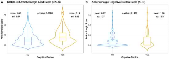 - Sargent, L.; Nalls, M.; Amella, E.J.; Mueller, M.; Lageman, S.K.; Bandinelli, S.; Colpo, M.; Slattum, P.W.; Singleton, A.; Ferrucci, L. Anticholinergic Drug Induced Cognitive and Physical Impairment: Results from the InCHIANTI Study. J. Gerontol. A Biol. Sci. Med. Sci 2020, 75, 995–1002. [Google Scholar] [CrossRef] [PubMed]