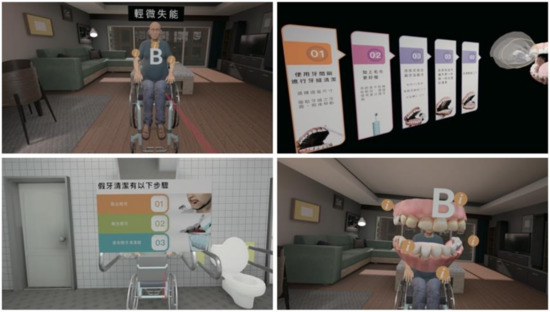 Chicago/Turabian StyleChang, Ai-Hua, Pei-Chen Lin, Pei-Chao Lin, Yi-Ching Lin, Yuji Kabasawa, Cheng-Yu Lin, and Hsiao-Ling Huang. 2022. "Effectiveness of Virtual Reality-Based Training on Oral Healthcare for Disabled Elderly Persons: A Randomized Controlled Trial" Journal of Personalized Medicine 12, no. 2: 218. https://doi.org/10.3390/jpm12020218