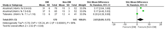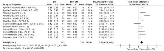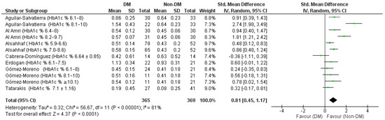 Septenary outcome: Standardized mean differences between PI between DM and non-DM groups at 6–12 months.