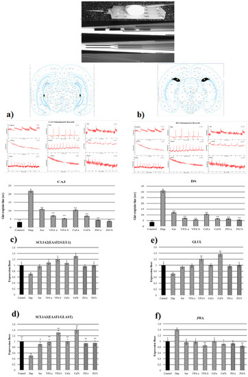 - Lee, S.G.; Su, Z.Z.; Emdad, L.; Gupta, P.; Sarkar, D.; Borjabad, A.; Volsky, D.J.; Fisher, P.B. Mechanism of ceftriaxone induction of excitatory amino acid transporter-2 expression and glutamate uptake in primary human astrocytes. J. Biol. Chem. 2008, 283, 13116–13123. [Google Scholar] [CrossRef] [PubMed] [Green Version]