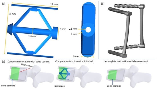 - Rotter, R.; Schmitt, L.; Gierer, P.; Schmitz, K.P.; Noriega, D.; Mittlmeier, T.; Meeder, P.J.; Martin, H. Minimum cement volume required in vertebral body augmentation—A biomechanical study comparing the permanent spinejack device and balloon kyphoplasty in traumatic fracture. Clin. Biomech. 2015, 30, 720–725. [Google Scholar] [CrossRef] [PubMed]