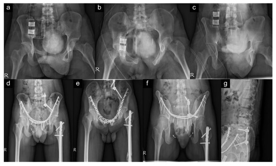 - Bellabarba, C.; Schildhauer, T.A.; Vaccaro, A.R.; Chapman, J.R. Complications Associated with Surgical Stabilization of High-Grade Sacral Fracture Dislocations with Spino-Pelvic Instability. Spine 2006, 31 (Suppl. 11), S80–S88. [Google Scholar] [CrossRef] [PubMed]
