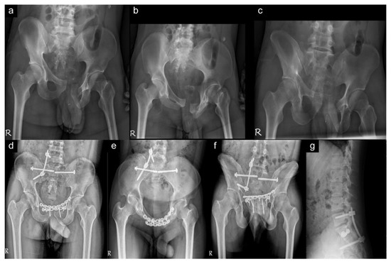 - Kaye, I.D.; Yoon, R.S.; Stickney, W.; Snavely, J.; Vaccaro, A.R.; Liporace, F.A. Treatment of Spinopelvic Dissociation: A critical analysis review. JBJS Rev. 2018, 6, e7. [Google Scholar] [CrossRef] [PubMed]