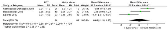 Forest plot of comparison: 1 PCT versus Motor alone; Outcome: 1.4 ADL post-treatment.