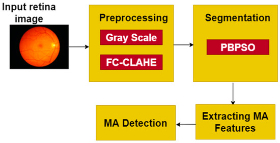 To predict the medical diagnosis of diabetes, the proposed improved discrete particle swarm optimization can be used as a global approach. Between 10 and 30% of diabetic patients can develop DR [29,30,31,32], but the early detection of microaneurysms can reduce the risk severity of DR [33]. Thus, it can be suggested that treatment may be possible by improving the diet, exercising, and carefully monitoring blood sugar levels.