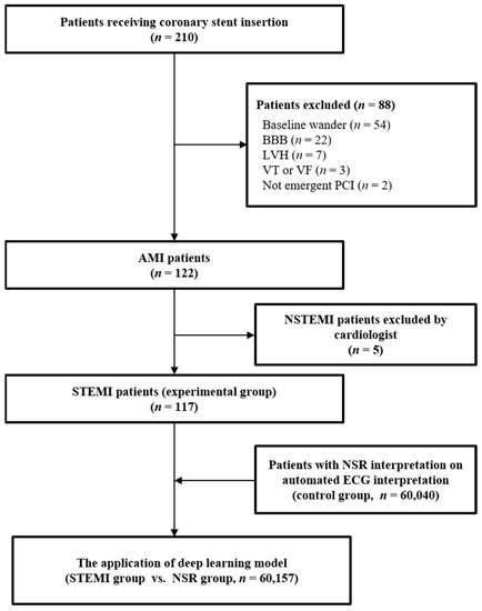 A total of 60,157 ECGs were obtained. These included 117 STEMI-ECGs and 60,040 NSR-ECGs (Figure 2).