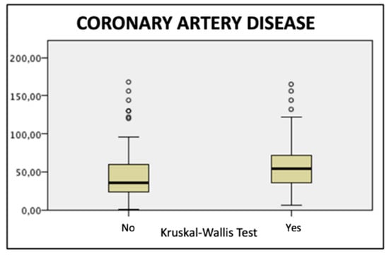 One-way analysis of variance (ANOVA), Kruskal–Wallis test, showing a highly statistical association (p = 0.00023) between coronary artery disease and refractory TIIEL occurrence.