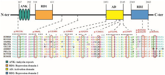 Position and conservation analysis of the 11 missense variation sites in ANKRD11 gene.