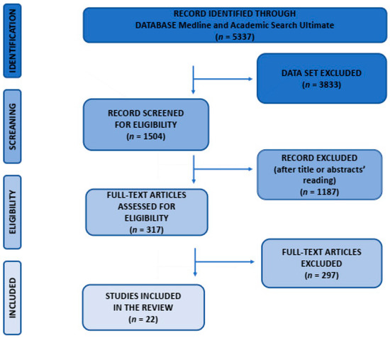 For the record identified through Medline and Academic Search Ultimate databases (articles published between 2015–2022), n = 5337.