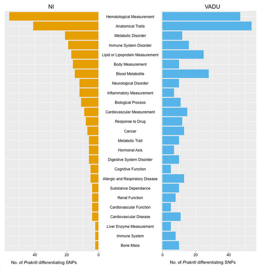 3.4. Enriched Disease/Traits Associated with Prakriti Differentiating Genetic Variations Enable Risk Stratification