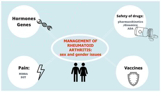 APA StyleMaranini, B., Bortoluzzi, A., Silvagni, E., & Govoni, M. (2022). Focus on Sex and Gender: What We Need to Know in the Management of Rheumatoid Arthritis. Journal of Personalized Medicine, 12(3), 499. https://doi.org/10.3390/jpm12030499