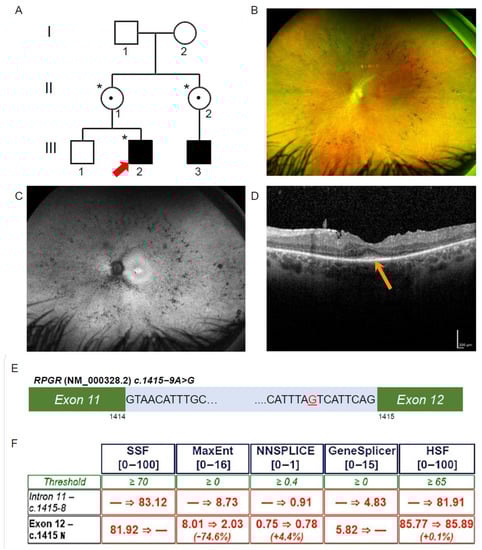3.2. Exome Sequencing, Segregation and Bioinformatic Analysis Identified a Novel Intronic RPGR Variant