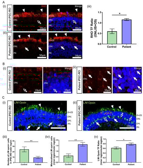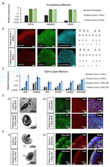 3.4. Control and Patient iPSC Lines Differentiate into iPSC-RPE and iPSC-ROs