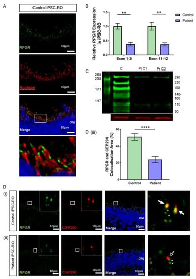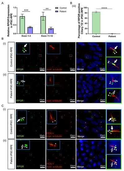 3.5. RPGR Variant iPSC-RPE Exhibits a Loss of RPGR Localisation at the Transitional Zone of Primary Cilia