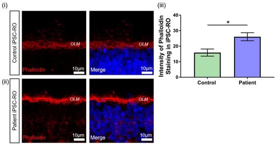 3.7. RPGR Variant iPSC-ROs Display Mislocalised Opsins, Increased Photoreceptor Apoptosis and Abnormal F-Actin Expression