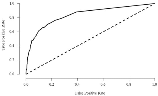 Model 2 showed the highest AUC value (0.836) when the RF technique was used (Table 3, Figure 1). This is a significantly higher result than when social isolation is not used as a predictor (model 1). Similar results were shown when using the KNN technique (model 2 = 0.836 vs. model 1 = 0.645), but the NN technique showed the opposite result (model 2 = 0.643, model = 0.702, Table 3).