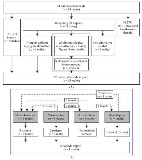 - Zorginstituut Nederland. Reimbursement per DDD 2016-2020 for ATC-subgroup N05AL03: Tiapride. Available online: https://www.gipdatabank.nl/databank?infotype=g&label=00-totaal&tabel_g_00-totaal=B_01-basis&tabel_h_00-totaal=B_01-basis&geg=vg&spec=vg_ddd&item=N05AL03 (accessed on 16 March 2022).