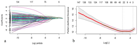 - Tibshirani, R. The lasso method for variable selection in the Cox model. Stat. Med. 1997, 16, 385–395. [Google Scholar] [CrossRef]
