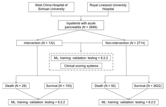 Data on patients with AP were collected, retrospectively (single center, Chengdu) and prospectively (two centers, Liverpool and Chengdu), and analyzed following the STROBE guidelines for observational studies [39]. Confirmation that specific ethical approval was not required was provided by the Institutional Review Board of West China Hospital of Sichuan University (WCH/SCU), due to prior approval for the use of retrospective data. Informed consent was obtained from patients admitted to Royal Liverpool University Hospital (RLUH), and ethical approval was not required because anonymized data were used. Predictors and outcomes from both retrospective and prospective databases were used to develop and test predictive models for intervention and mortality.