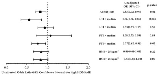 | High HOMA-IR | Crude OR (95%Cl) | p-Value | Adjusted OR (95%Cl) (Forward) | p-Value |