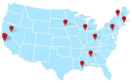 We identified 12 programs that offer genomic screening to unselected populations in the U.S., listed in Table 2. They are widely dispersed geographically and located primarily at major tertiary care or academic medical centers, with several notable exceptions specifically targeting rural populations, described in more detail below (see map, Figure 1). All programs were associated with not-for-profit institutions, three public and nine private. We grouped them into four main categories: (a) health system-wide programs with primary care provider-based enrollment (n = 4); (b) clinical pilot projects inviting a pre-defined number of patients to participate (n = 3); (c) screening offered via statewide programs (n = 2); and (d) screening as an additional service in a genetics clinic (n = 3).