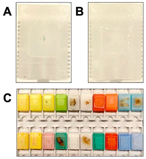 - Groelz, D.; Viertler, C.; Pabst, D.; Dettmann, N.; Zatloukal, K. Impact of Storage Conditions on the Quality of Nucleic Acids in Paraffin Embedded Tissues. PLoS ONE 2018, 13, e0203608. [Google Scholar] [CrossRef] [PubMed]