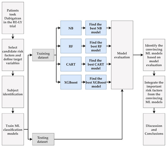 We proposed an integrated ML feature selection scheme for predicting vascular events and bleeding in patients with NVAF taking dabigatran and for identifying important risk factors. Figure 1 shows the process of establishing the proposed scheme.