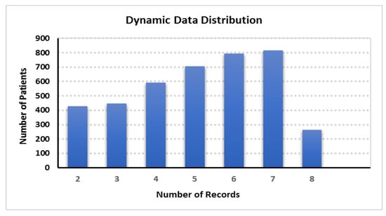 Our experimental evaluation (Figure 12) also discloses that the static PSN data provided more accuracy than the dynamic PSN data. Here, the dataset consisted of static data, such as gender, age, and diabetic status, which featured categorical values with little variance. However, the dynamic features included frequently changing time-variant fields, such as BMI, Chol, and LDL, and each patient had a varying number of hospital visits (Figure 9). According to our view, the variance in static and dynamic data components, as well as the differences in PSN calculation methods, such as data reduction using autoencoders in dynamic PSN calculation, resulted in a considerable difference in accuracy. Similar studies depicted that autoencoders may cause accuracy reduction [66]. Another study on the performance of autoencoder with Bi-Directional LSTM [67] reported that the accuracy and F1-score of the model with an autoencoder dropped by around 4% and 9%, respectively, indicating that some information is lost because the encoding process does not hold all of the information from the original data. Moreover, as per Chen [68], even if the epoch size is high, the accuracy will be less than the initial accuracy because encoding and decoding cause some data loss. We believe this holds true in our above experiment using autoencoder for data reduction as well, where accuracy variation is around 1–5% between the static and dynamic PSN data.