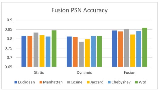 Our multi-model PSN can be used for unsupervised or supervised data with high accuracy. To validate this, we selected one of the features as a labeled outcome to convert unsupervised learning into a supervised learning technique. Further, we evaluated the similarity network matrices with respect to this outcome. The experimental results show that a higher accuracy is achieved by the fused similarity matrix when compared with those of both the static and dynamic data similarity matrices when evaluated independently.
