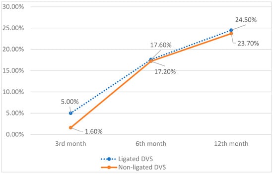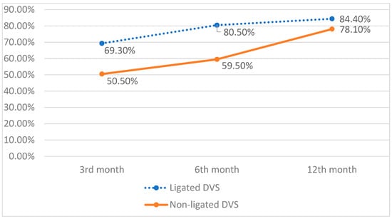A total of 345 patients declared regular sexual activity in presurgical evaluation: 88.6% in the non-ligated DVC and 75.7% in the ligated DVC group.