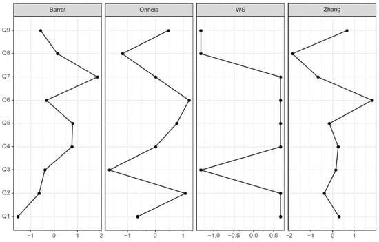 | Item | Betweenness | Closeness | Strength | Expected Influence |