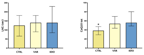 As shown in Figure 2, TAC, expressed as LAG phase, did not differ between the three groups, whether or not CoQ10 seminal levels were higher in the varicocele and idiopathic groups when compared to the controls.