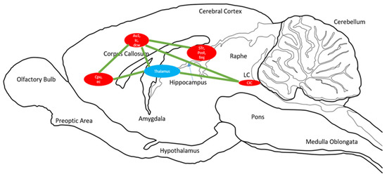 - Paxinos, G.; Watson, C. The Rat Brain in Stereotaxic Coordinates, 6th ed.; Elsevier: Amsterdam, The Netherlands, 2007; ISBN 9780123919496. [Google Scholar]