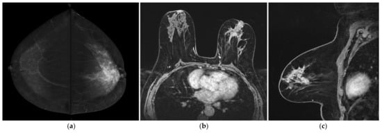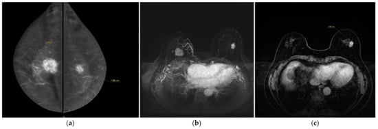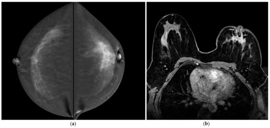 - Thompson, J.L.; Wright, G.P. The role of breast MRI in newly diagnosed breast cancer: An evidence-based review. Am. J. Surg. 2021, 221, 525–528. [Google Scholar] [CrossRef]