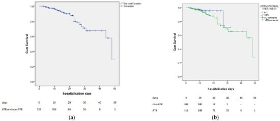 - Schons, M.J.; Caliebe, A.; Spinner, C.D.; Classen, A.Y.; Pilgram, L.; Ruethrich, M.M.; Rupp, J.; de Miranda, S.N.; Römmele, C.; Vehreschild, J.; et al. All-cause mortality and disease progression in SARS-CoV-2-infected patients with or without antibiotic therapy: An analysis of the LEOSS cohort. Infection 2022, 50, 423–436. [Google Scholar] [CrossRef]