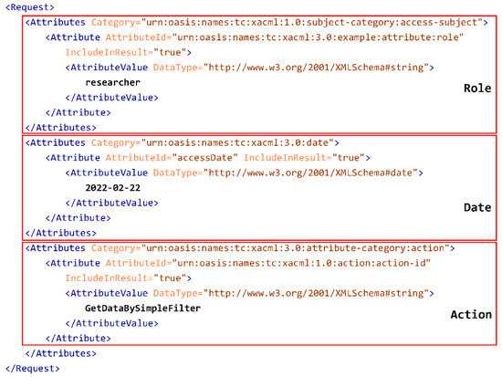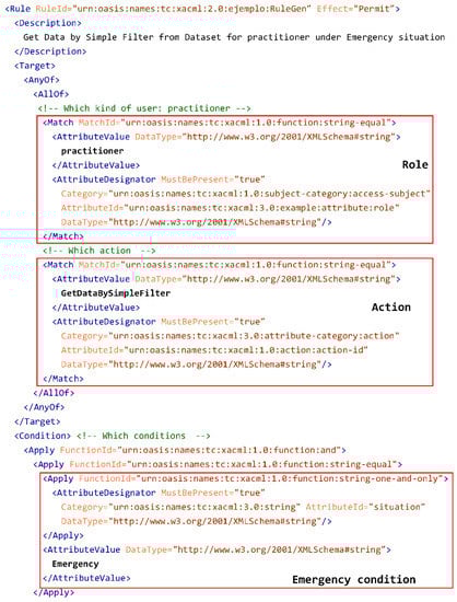 Inside XACML rules, different information elements can be defined, as presented in [12,13,14]: