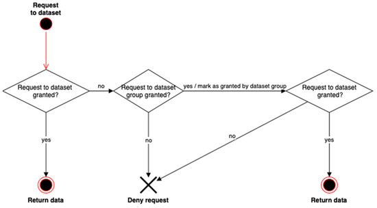 - Privacy rules used for access control on both genomic data and metadata, are stored in the corresponding protection box at the information level and apply to dataset groups or datasets [18]. This structure is described in Section 2.3.