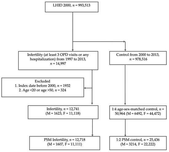 Study Design. Abbreviations: LHID = Longitudinal Health Insurance Database; OPD = outpatient department; M = male; F = female; PSM = propensity score matching.
