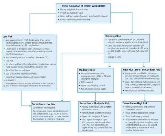 AUA/SUFU neurogenic lower urinary tract dysfunction risk stratification flow chart. Adapted with permission from Ref. [15]. 2021, Ginsberg et al.