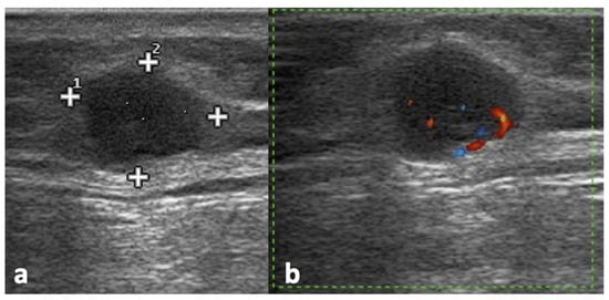 - Bedi, D.G.; Krishnamurthy, R.; Krishnamurthy, S.; Edeiken, B.S.; Le-Petross, H.; Fornage, B.D.; Bassett, R.L.; Hunt, K.K. Cortical morphologic features of axillary lymph nodes as a predictor of metastasis in breast cancer: In vitro sonographic study. Am. J. Roentgenol. 2008, 191, 646–652. [Google Scholar] [CrossRef]