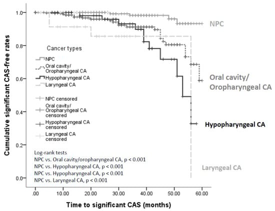 Liu C-H, Huang B-S, Lin C-Y, Yeh C-H, Lee T-H, Wu H-C, Chang C-H, Chang T-Y, Huang K-L, Jiang J-L, et al. Head and Neck Cancer Types and Risks of Cervical–Cranial Vascular Complications within 5 Years after Radiation Therapy. Journal of Personalized Medicine. 2022; 12(7):1060. https://doi.org/10.3390/jpm12071060
