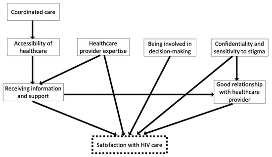 Feeling safe and supported in healthcare settings was the most important and central consideration in participants’ satisfaction with HIV care. Although this category included constructs consistent with the existing literature [8], participants elaborated further, identifying additional factors that define feelings of safety and support in healthcare. Participants weighted communication of information and resources and confidentiality and sensitivity to stigma as contributing strongly to their relationships with their healthcare providers. These findings align with previous studies that identified patient-provider communication as important for care engagement [31,32] and resilience, particularly for more marginalized populations living with HIV [33]. Interpersonal aspects of care that respond to known structural barriers to care for women living with HIV also emerged as significant. Participants described the importance of provider and clinic sensitivity to stigma, a known barrier to accessing HIV care [34]. Fear of HIV-related stigma has been found to impact interactions with HIV clinics and staff [35]. The importance of patient-provider relationships, including those developed with female healthcare providers, has been shown to affect health outcomes, such as discussing reproductive goals with healthcare providers and sexual and perinatal wellbeing among women living with HIV [12,36]. Healthcare provider gender has been shown to predict health outcomes outside of HIV care [37,38]. Women living with HIV who have good relationships with their care providers may be more likely to remain engaged in and feel safe, supported, and satisfied with their HIV care.