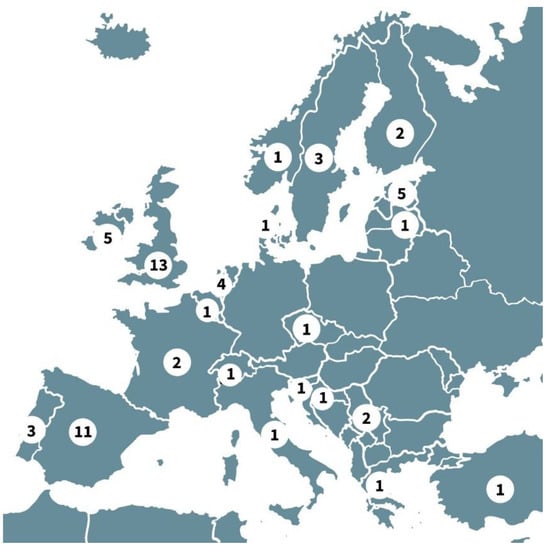 Participants were predominantly from Europe (n = 61), but there were also three participants from Hong Kong, five from the USA, two from Australia, one from Israel, one from New Zealand and one from Japan. Of the 82.4% of European experts, most were from the UK (n = 13) and Spain (n = 11). There were also participants from Estonia (n = 5), Ireland (n = 5), the Netherlands (n = 4), Sweden (n = 3), Portugal (n = 3), Finland (n = 2), France (n = 2), and Serbia (n = 2), as well as one each from Belgium, Croatia, Czechia, Denmark, Greece, Italy, Latvia, Norway, Slovenia, Switzerland, and Turkey (Figure 3).