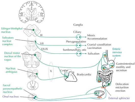 - Benarroch, E.E. Physiology and Pathophysiology of the Autonomic Nervous System. Continuum (Minneap Minn). CONTINUUM Lifelong Learn. Neurol. 2020, 26, 12–24. [Google Scholar] [CrossRef] [PubMed]