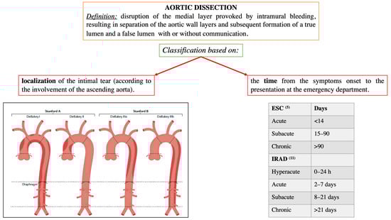 Localization and time-based definitions of aortic dissection, according to the European and American guidelines [5,6], and the International Registry of Acute Aortic Dissection (IRAD) [11]. Modified by Bossone et al., Nat Rev Cardiol. 2021 May;18(5):331–348 [10].