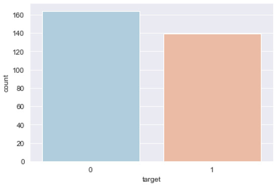 A bar plot for the target class is shown in Figure 3. It is critical that the dataset on which we are working is approximately balanced. That is, the target classes are roughly equal in size. A dataset that is extremely unbalanced can render the entire model training. As illustrated in Figure 3, the ratio between the two classes is not exactly 50%; however, it is sufficient to proceed without reducing or expanding our dataset.
