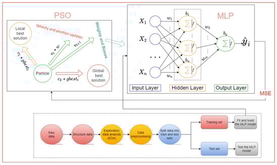 This paper proposes a swarm-based MLP (MLP-PSO) network for heart disease prediction. The particle swarm optimization (PSO) algorithm is used as an efficient optimization technique to guide MLP training optimization, which includes determining the optimal weights and bias values. It has been demonstrated that the PSO algorithm provides better performance when compared to other heuristic optimization methods [31,32,33]. PSO is simple to implement, computationally efficient, and robust in terms of the controlling parameters [34,35].