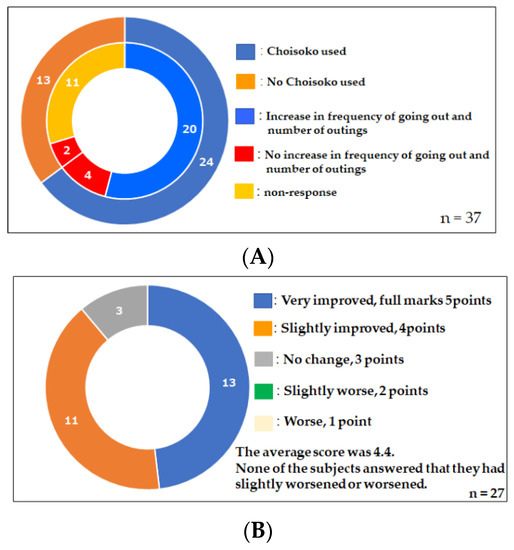 (A) Choisoko usage and frequency of going out. The use of Choisoko creates going out. (B) Changes in quality of life due to the use of Choisoko.