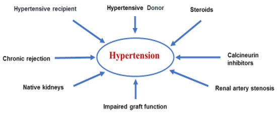- Castillo-Lugo, J.A.; Vergne-Marini, P. Hypertension in kidney transplantation. Semin. Nephrol. 2005, 25, 252–260. [Google Scholar] [CrossRef] [PubMed]