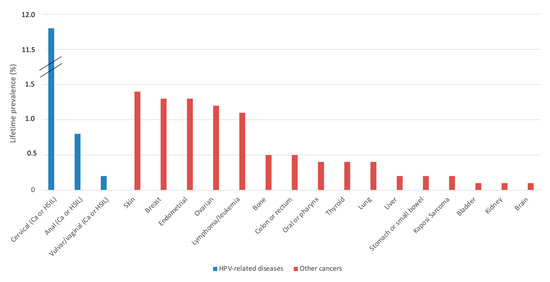 For previous history of cancers, we asked: “Have you ever been diagnosed with any form of cancer or pre-cancer?” If a participant answered yes, they could select one of more of the following responses: oral or pharynx, thyroid, skin, lung, breast, liver, stomach or small bowel, colon or rectum, anal, ovarian, endometrial (i.e., of the uterus), cervical, vulvar, lymphoma/leukemia, bladder, kidney, high-grade cervical pre-cancer (Cervical Intraepithelial Neoplasia or CIN 2 or 3), high-grade vulvar or vaginal pre-cancer (Vulvar or Vaginal Intraepithelial Neoplasia, VIN or VaIN 2 or 3), high-grade anal pre-cancer (Anal Intraepithelial Neoplasia, AIN 2 or 3), and other (please specify). Note that since the time period we designed the questionnaire, the preferred terminology to designate high-grade precancer changed to high-grade squamous intraepithelial lesion (HSIL) [25], which is the terminology we will use from here on out.